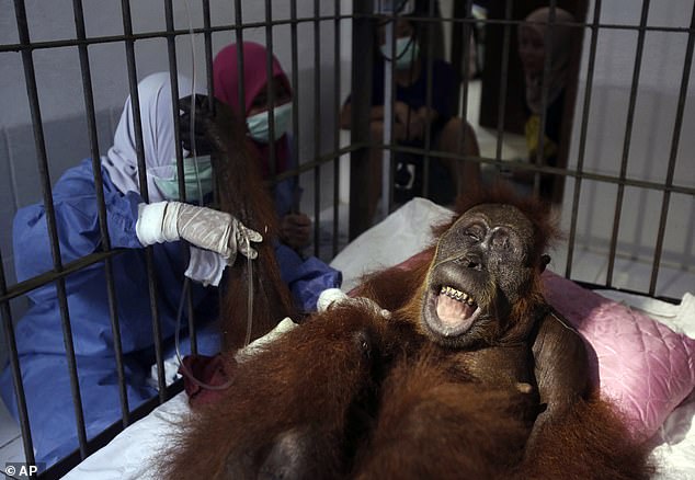 The orangutan, named Hope, was taken to a veterinary clinic and cared for by volunteers from the Sumatran Orangutan Conservation Program, together with her baby, who later died because of dehydration and malnutrition.