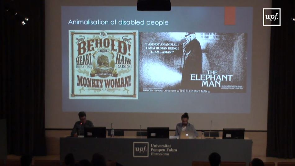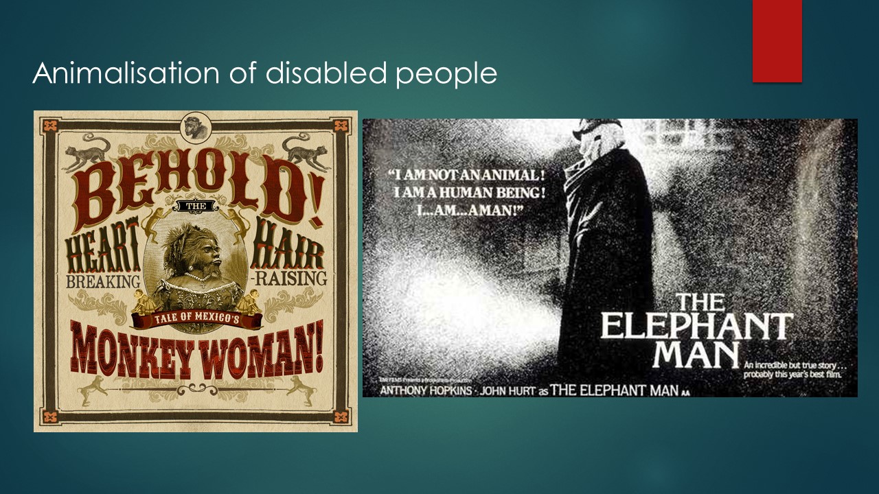 One of the slides from my presentation, about the animalisation of disabled persons.