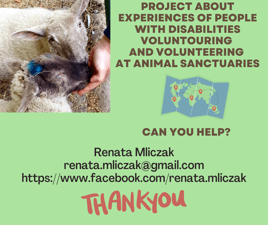 Do you sometimes volunteer at an animal sanctuary? Are animal sanctuaries accessible for disabled people? Do you want to share your thoughts?
