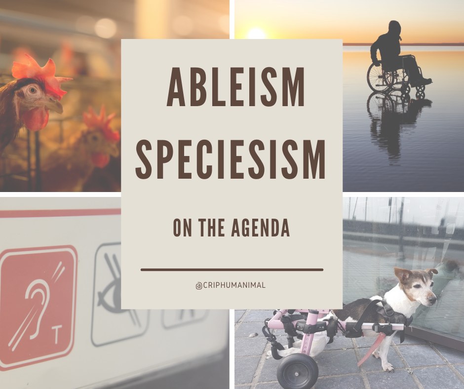 At the intersections are issues like the animalisation of disabled people, ableist and speciesist language use, the health impact of the Animal Industrial Complex on both other animals and humans (people who work there, those living in the area, ..), the impact of eating animals on human health, (in) accessibility and inclusion of disabled and chronically ill vegans in the movement, disabling of other animals by mutilating their bodies, etc.