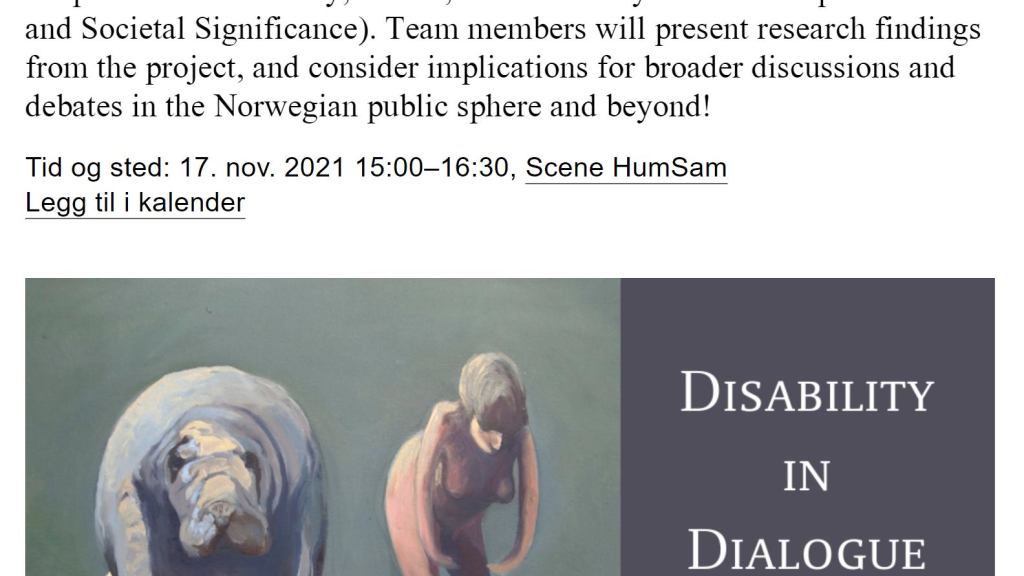 Event: Wednesday, November 17, 2021. ➡️➡️ Disability in Dialogue with Animality: The BIODIAL Project